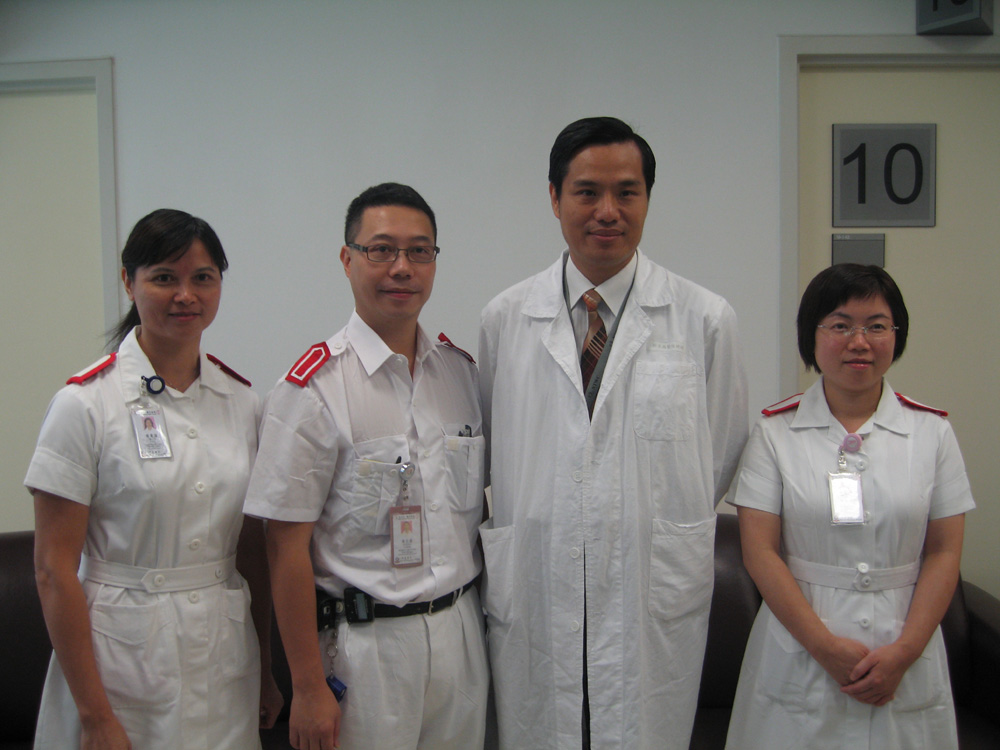圖:王志勇(右二)介紹,博愛醫院在今年暑期推出的新措施,將輪候時間由最長七年縮短至兩年