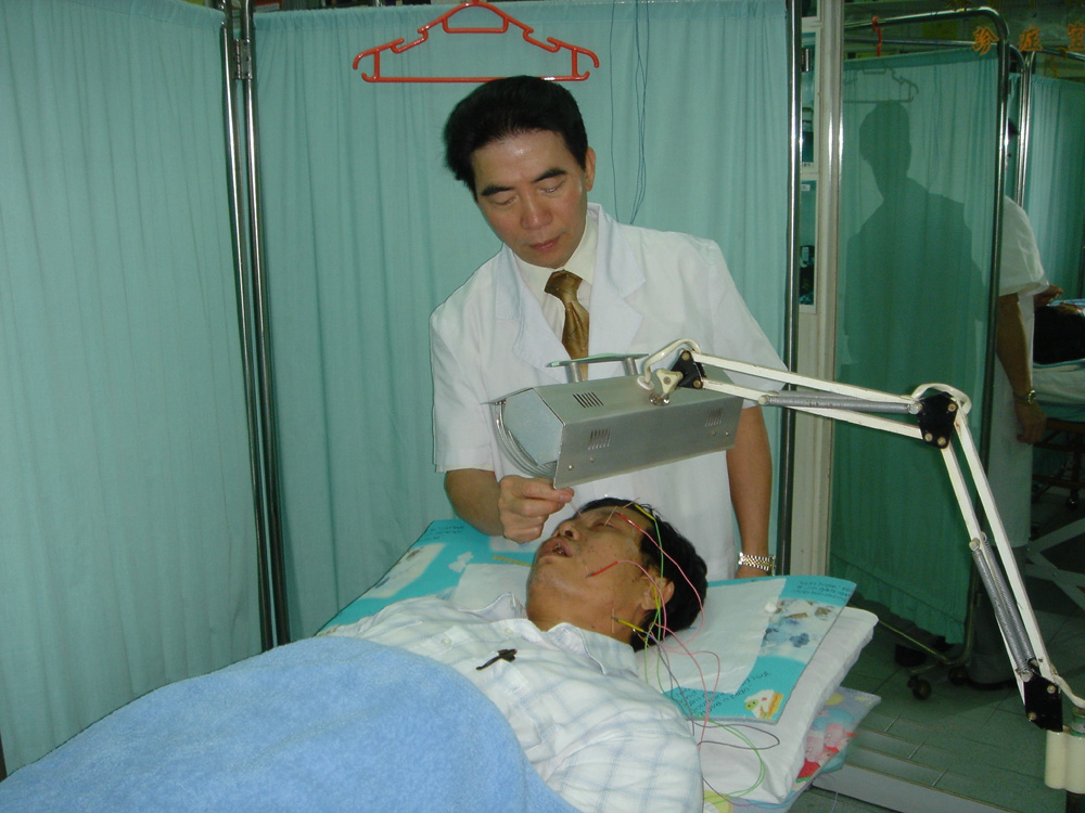 (2)兩手同時近距離相向對兩側面部(即健側和患側發放外氣5─15分鐘或頻譜治療30─45分鐘。)