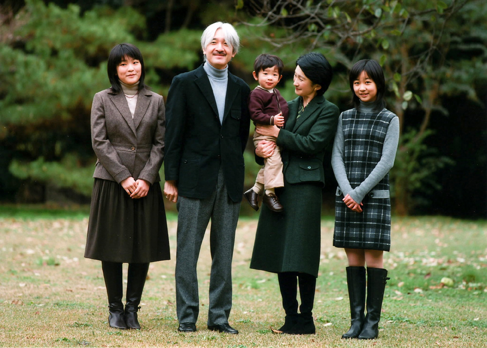 圖:日本二皇子秋篠宮全家福,自左向右依次為真子公主、秋篠宮親王、紀子妃(手抱悠仁皇子)、佳子公主(資料圖片)