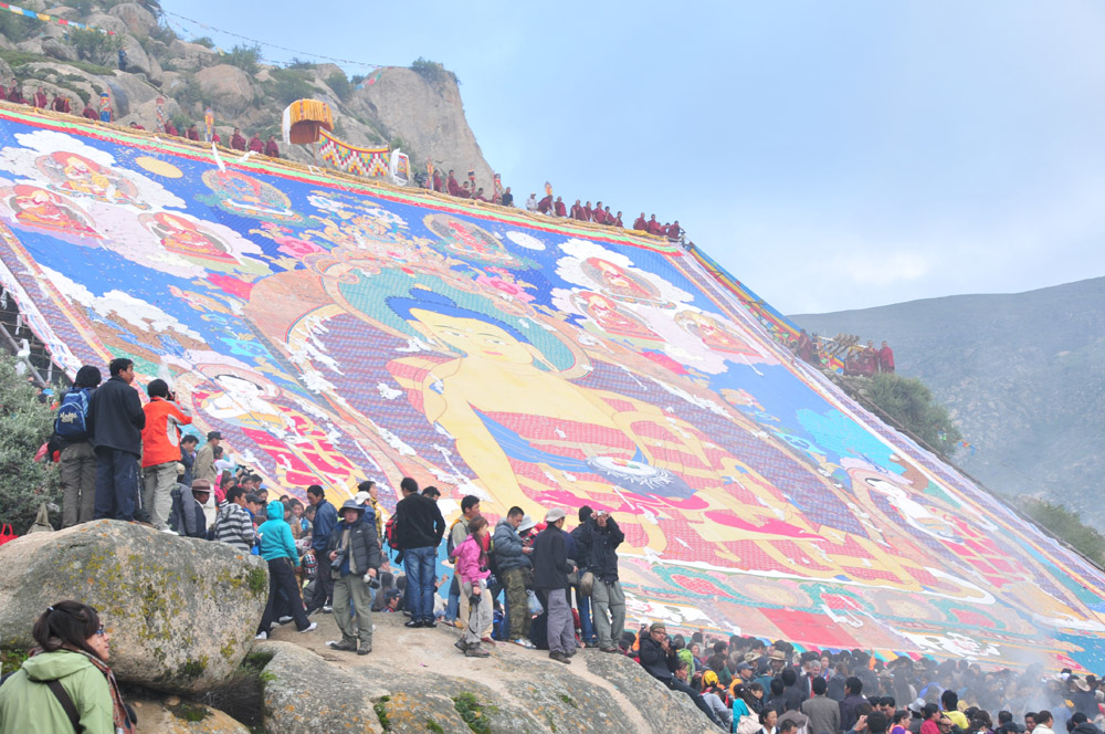 「雪頓節」是除了藏曆新年之外,最大的節日,也是一個傳統的慶豐收、除妖辟魔的節日。「曬大佛」是「雪頓節」期間諸多活動中一個很重要的組成部分。