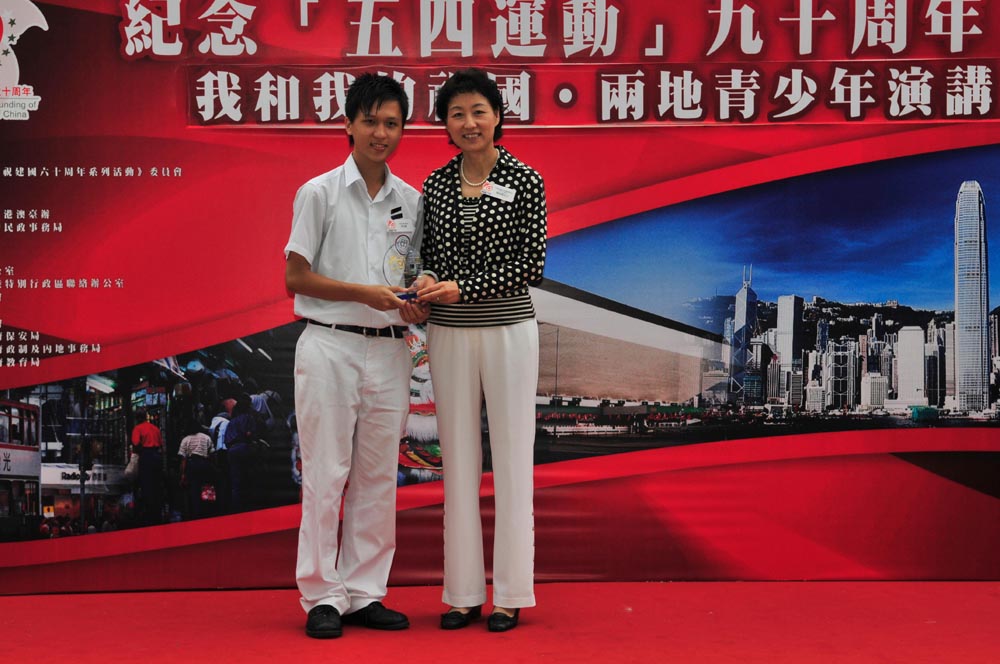 「我和我的祖國·兩地青少年演講」是今年五月香港第三屆「中華民族文化周」的一項重要活動,其中五位演講學生分別來自四川、內蒙、新疆、西藏、廣西,另外四位香港同學透過全港學校選拔選出。每位同學進行限時五分鐘的脫稿演講,自如流暢的表達,激情昂揚,儀表大方,富有說服力與感染力的演說引起了聽眾的認同與共鳴。