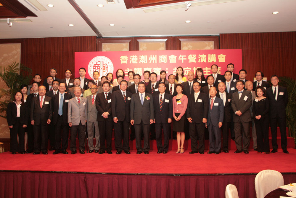 圖:胡定旭出席香港潮州商會午餐演講會合影(本報攝)