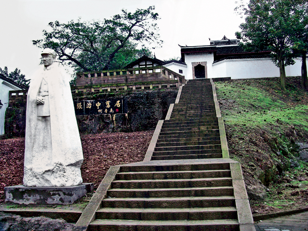 圖:張治中舊居前豎立了其塑像(資料圖片)