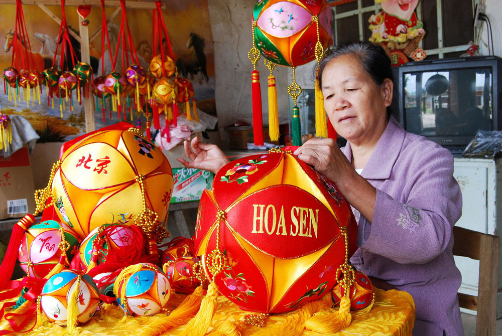 李莉告訴記者:「我這幾個孩子讀書的費用都是做繡球供的,也沒數過一年做了多少個繡球,反正一直脫銷。」難怪記者到訪時,幾乎每家每戶的婦女都在做繡球,一片忙碌的景象。黃肖琴更是忙着為新中國六十周年慶典製作一個直徑二米的大繡球,將於北京、廣西民族博物館展覽。一針一線,前景無限──繡球成為了舊州街獨特的象徵符號。