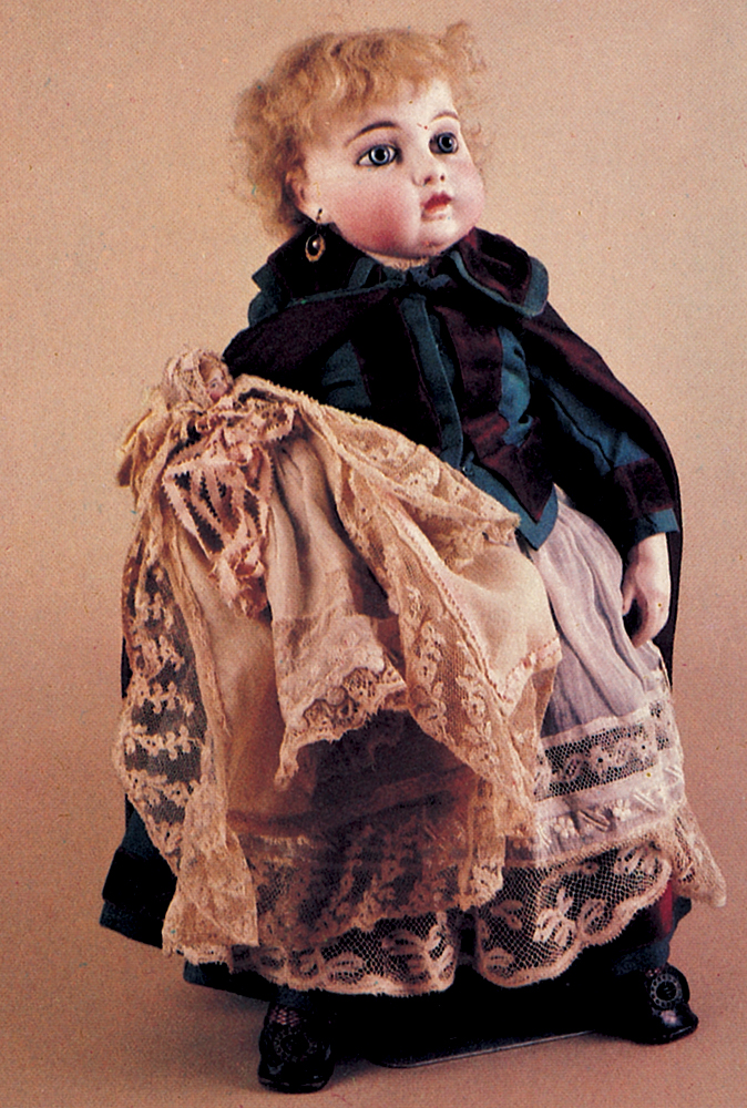 例如附圖的素瓷洋囡囡,乃一八八○年法國著名品牌Bru特製的精品,連原裝衣服,完整無缺保存至今,洵為古董洋囡囡的珍罕品。通常「行家」均知道古董洋囡囡中,以十九世紀中葉法國兩個品牌最精美及保值;只要品相好,不愁沒有肯出高價和識貨的買家。其一為一八四三年至一九三○年巴黎Jumeau所製的精品,尤以初期者更有藝術性,活靈活現,神氣十足,迄今存世者如鳳毛麟角。另一品牌就是Bru,從一八六六年開創,直至一九三九年也有生產。其製作嚴格,一絲不苟,每款數量極少;有些甚至獨一無二。一九○五年所製者,乃世界各地收藏家渴求的對象。