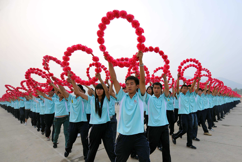 圖:北京外國語大學布置「神州飛天」主題花壇迎國慶(中新社)