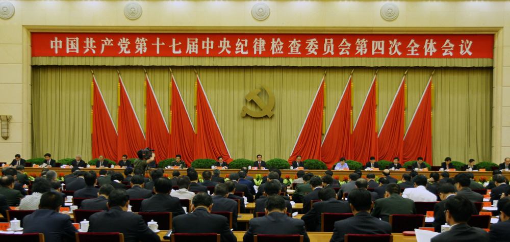 圖:十九日,中國共產黨第十七屆中央紀律檢查委員會第四次全體會議在北京舉行 (新華社)