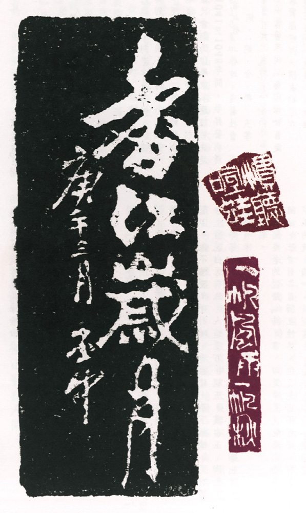 我贊同姜老的說法「詩、書、印是華夏文化藝術的重要組成,三者有各自獨立性格,但又是密不可分,有着血緣關係的統一體」。時至當今,由於大印的不斷出現,「篆刻已不再是作品中可有可無的陪襯,而是參與作品表達主題內涵必不可少的重要語言和手段。」不僅各自獨立,更是良性的互補關係。看他的作品有時以鑿石篆刻為主,用書法解釋篆刻文字,來表達畫面主題,有時以書法為主,用篆刻強化主題等手段來表達。