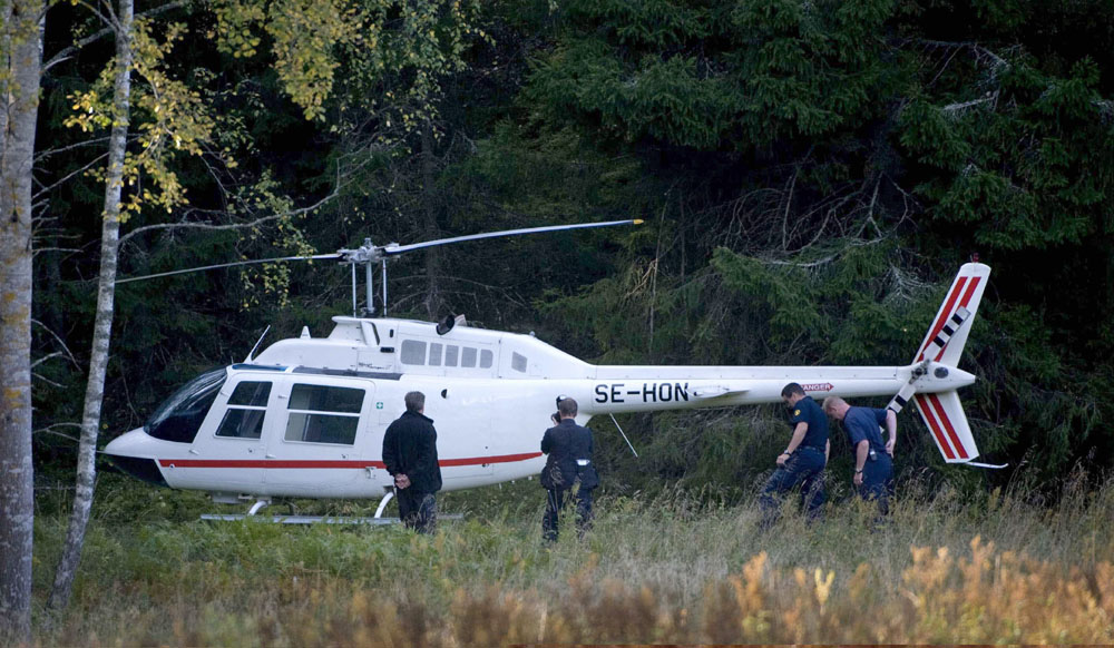 警方後來在斯德哥爾摩以北一個湖附近發現一架被棄置的直升機,該架直升機已經報失,相信就是案中使用的直升機。
