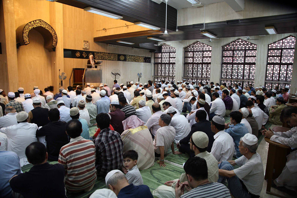 我曾到過九龍清真寺觀看穆斯林的開齋節祈禱,今年改到灣仔愛羣清真寺看看他們的崇拜情況。當日早上,教徒絡繹不絕到來,男性和女性進入不同的禮拜殿聚集,大部分為巴籍人士,也有為數不少的華人,另外亦有非洲裔人士,可見這個宗教無分疆界。在香港伊斯蘭聯會教長楊興本帶領下,眾人一起祈禱,過程包括立意、鞠躬和叩頭,儀式結束後大家互相擁抱,祝賀開齋。