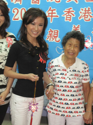 應屆港姐冠軍劉倩婷,亞軍李姿敏,季軍熊穎詩,最上鏡小姐袁嘉敏,國際親善小姐黃嘉麗及09年香港先生少年組冠軍陳偉洪昨日齊到九龍城仁濟醫院吳王依雯長者鄰舍中心探訪,與一眾長者預祝中秋節。