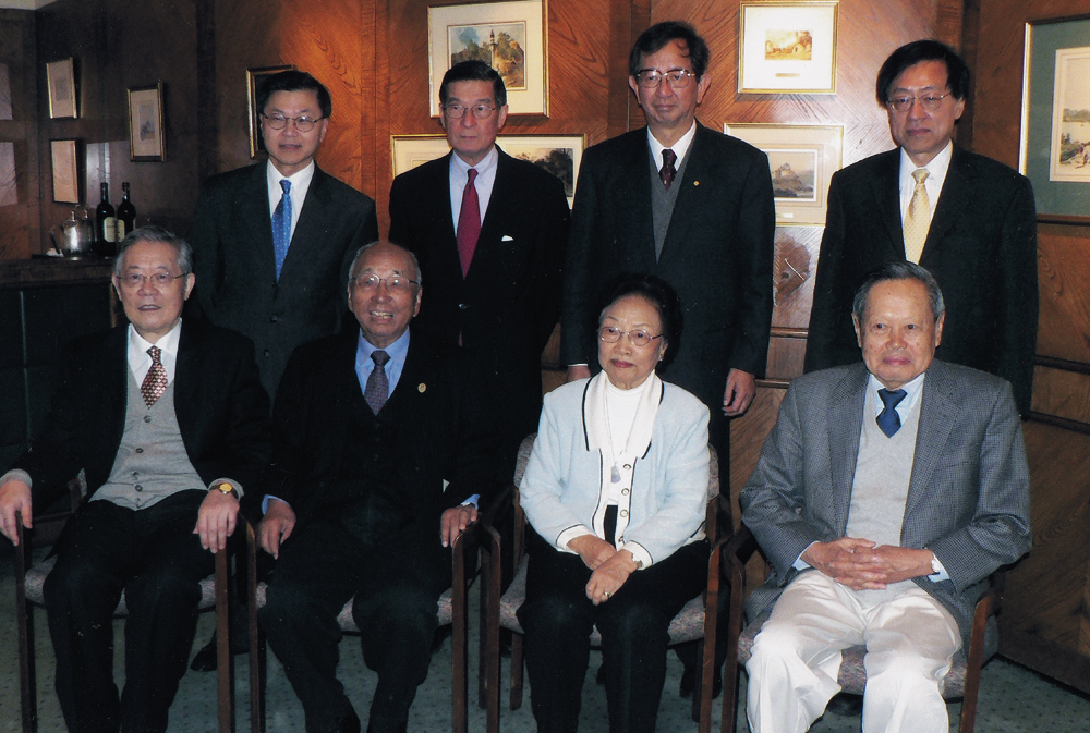 圖:求是科技基金會創辦人及顧問:(前左起)周光召、查濟民、劉璧如、楊振寧,(後左起)何大一、簡悅威、李遠哲、姚期智