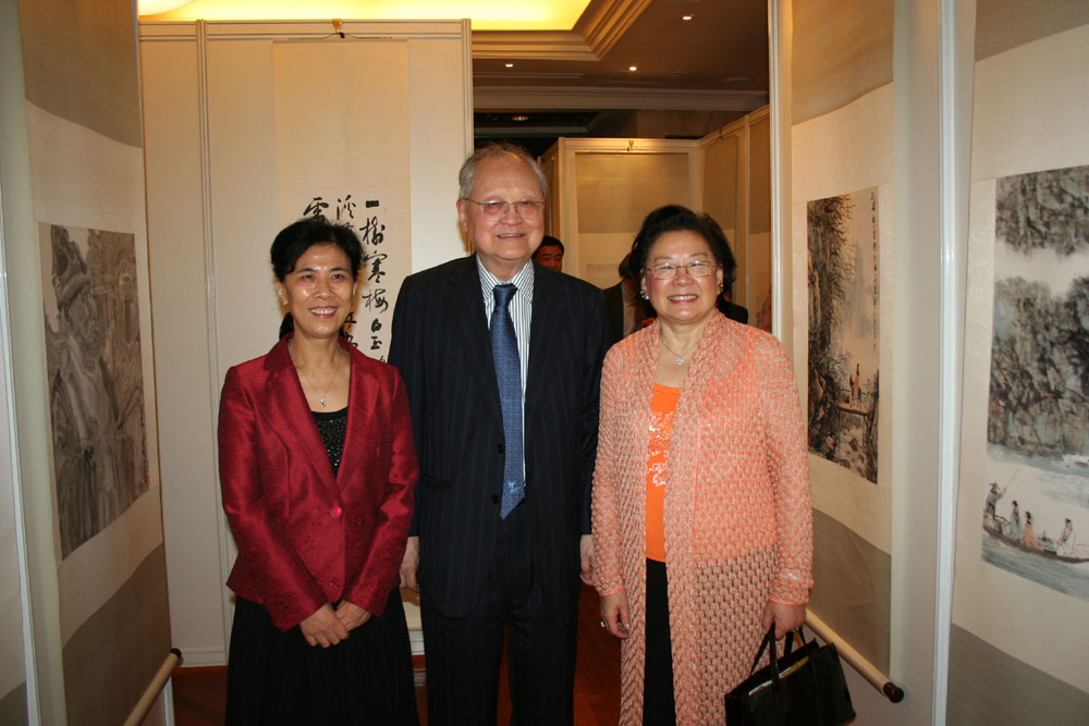 在主人的熱情陪同下,嘉賓們參觀了畫展。參加此次展覽的書畫家都是該省海聯會的理事,也是近年來活躍於書畫壇的知名藝術家,如江蘇省國畫院一級美術師蕭平;國家一級美術師傅二石;蘇州市國畫院一級美術師徐源紹;南京大學教授楊休;江蘇省國畫院一級美術師徐善、喻慧;南京藝術學院教授黃惇等。