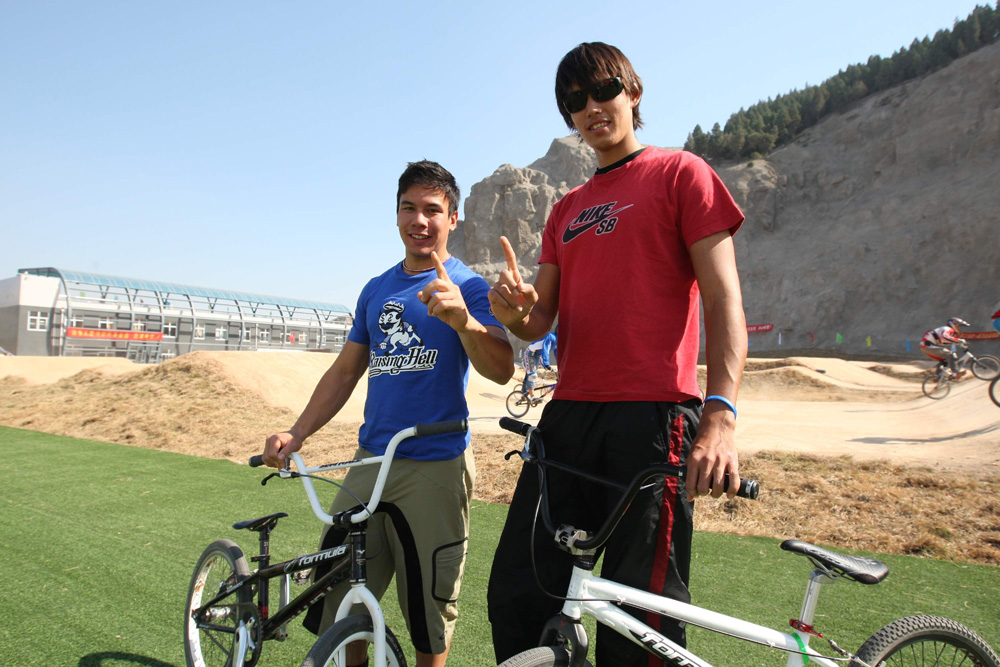 圖:王史提芬(左)與韓理強將聯袂在男子BMX越野賽出擊,衝擊香港團首金(本報濟南傳真)