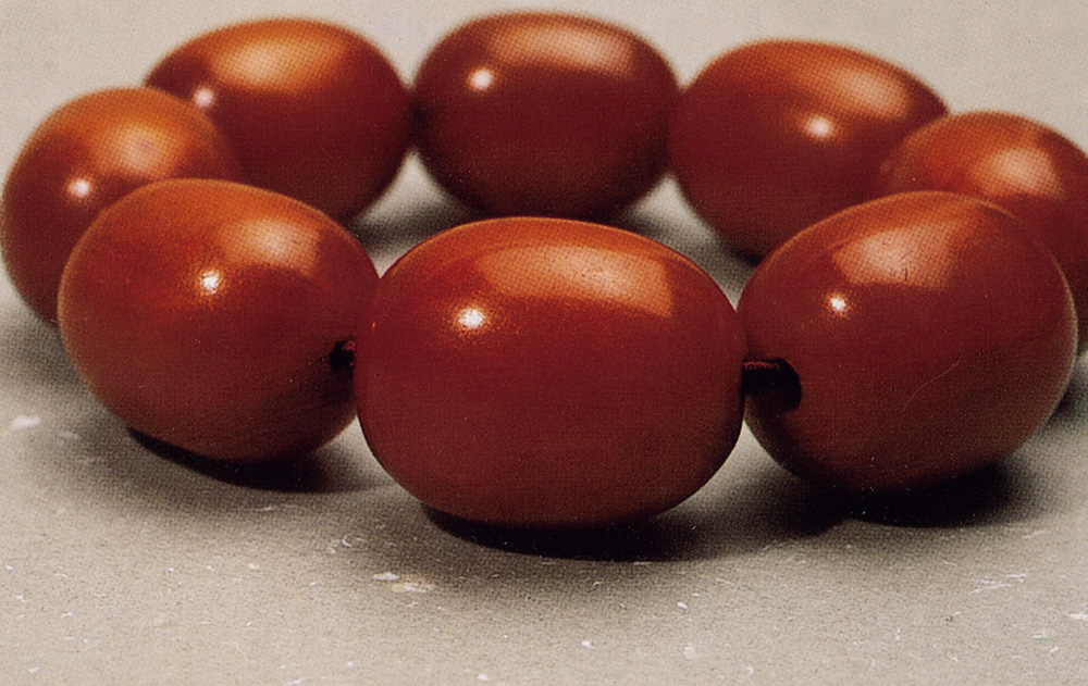 「骨董」蜜蠟珠中,有一些珍罕品乃可遇而不可求。例如附圖的金沙種老蜜蠟舊珠子,全屬天然形成,歷時湮遠,並非人工造假所能達致。其最大特色為全珠表層均勻地布滿細小的熒光點,使其看起來如沾滿粒粒閃閃生輝的金沙。只有老蜜蠟才能如此,可說是經歷悠長歲月的見證。