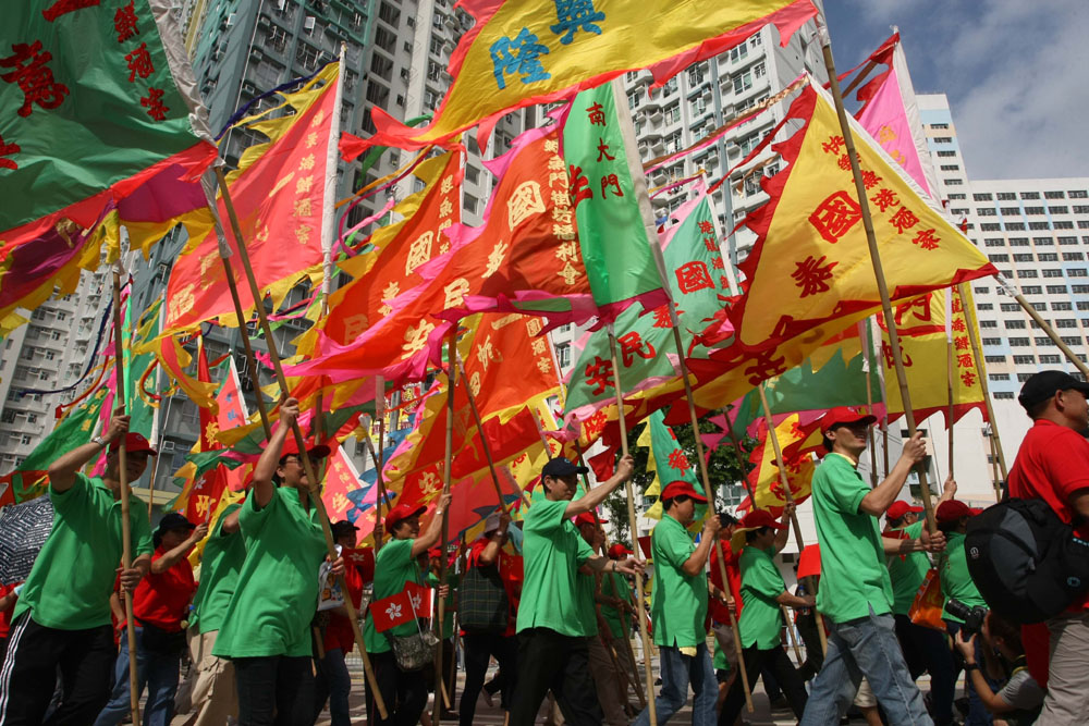 圖:觀塘區昨日舉行大型巡遊,旗海飄揚喜迎東亞運動會(本報攝)