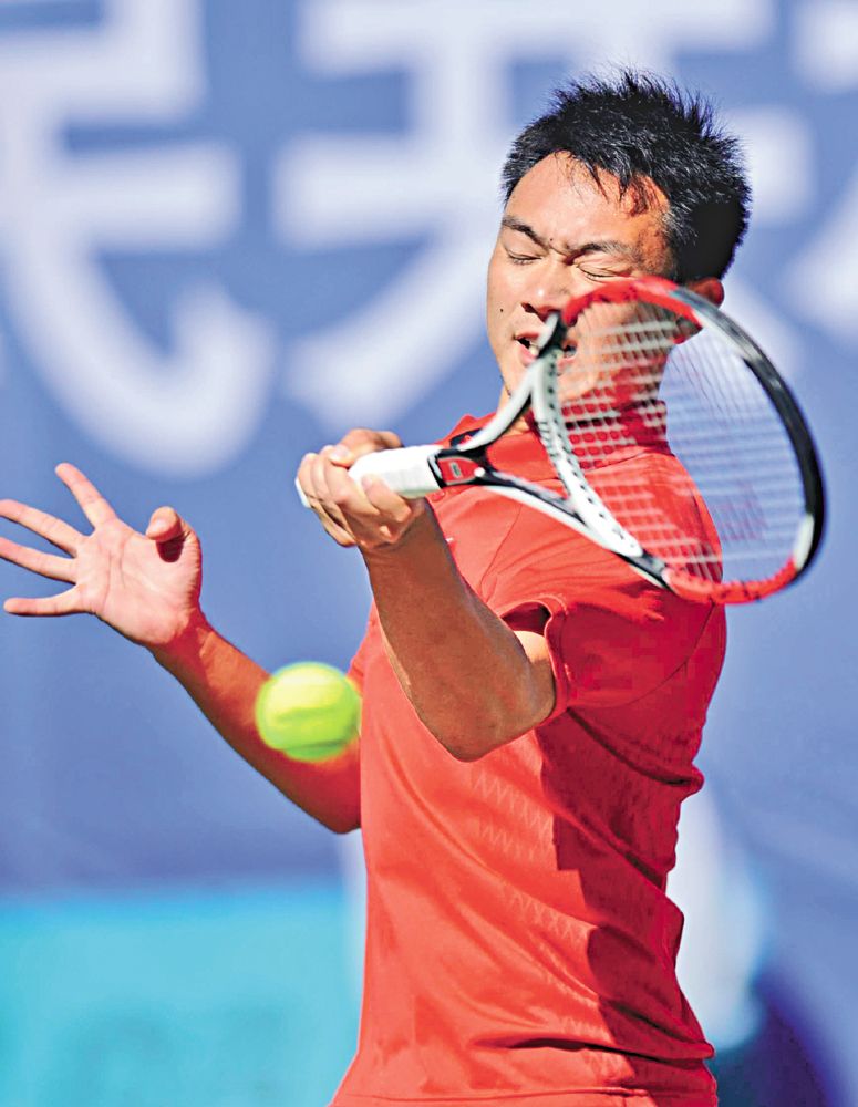 圖:余曉東在比賽中奮力擊球