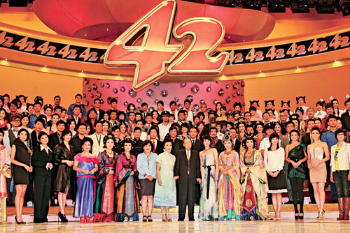無線昨日在電視城舉行《TVB 42周年台慶亮燈》儀式,行政主席邵逸夫爵士(六叔)親臨主禮,適逢昨晚是兩線台慶劇《宮心計》及《富貴門》首播,所以兩劇演員盡出,連同姐級司儀鄭裕玲(嘟姐)、汪明荃(阿姐),以及其他小生花旦等,場面十分熱鬧。而亮燈儀式後,兩劇的演員就分別前往大角咀及荃灣的兩個商場宣傳及看首播,最後兩劇演員再會合進行戶外直播,為昨晚的首播壯聲勢。