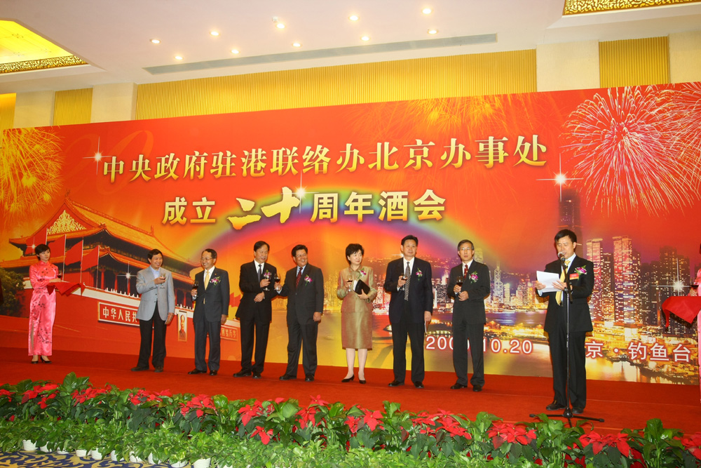 二十日的慶祝酒會由中聯辦北京辦事處主任秦新民主持,中聯辦副主任王志民,國務院機關事務管理局黨組成員、各省市駐京辦事處管理司司長尚曉汀,以及特區政府駐京辦事處主任曹萬泰分別在酒會上致辭。