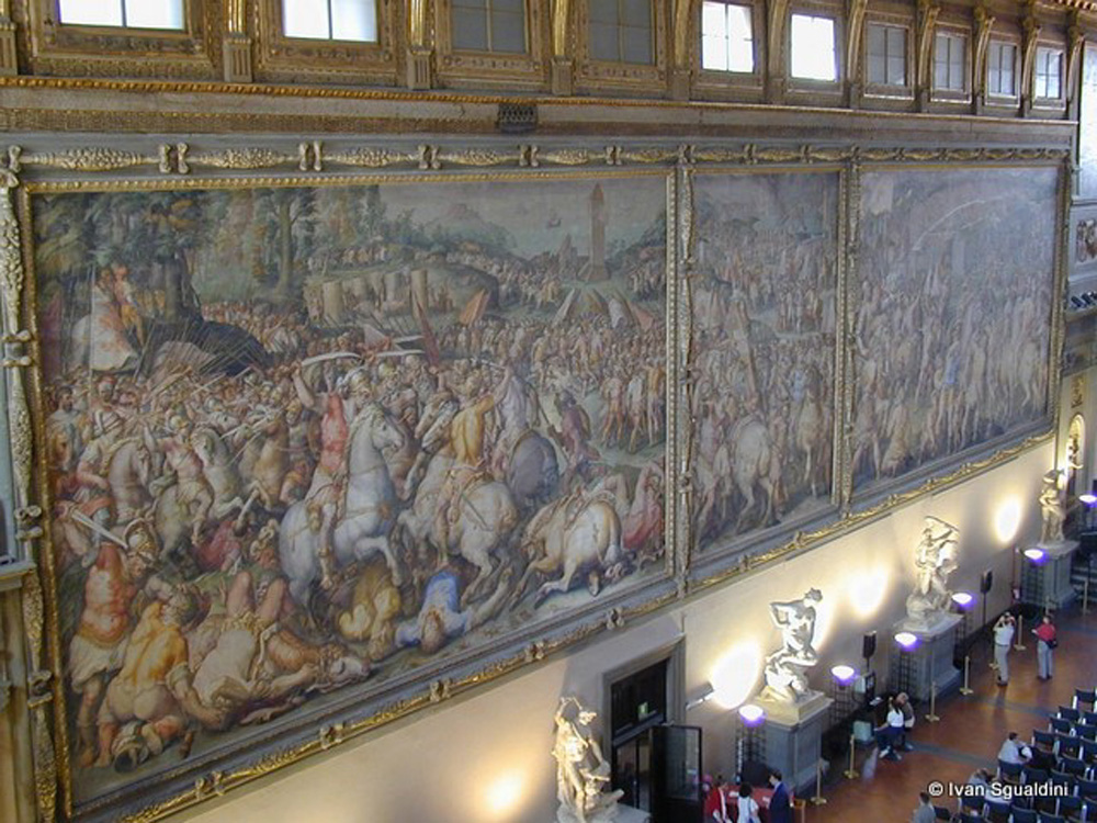 如果事實證明塞拉西尼是對的,這次發現將轟動全球:《安吉亞里戰役》創作於一五○三年,描繪了一個波瀾壯闊的戰爭場景,而且它的面積是達文西名作《最後的晚餐》的三倍,是達文西所有作品當中面積最大的一幅,以紀念統治佛羅倫薩市的梅迪奇家族被推翻後,佛羅倫薩成了共和國。不過,達文西未有畫完這幅畫。當梅迪奇家族一五六○年代重新掌權時,相信瓦薩里受了委託,在達文西創作原畫的位置另繪新作。