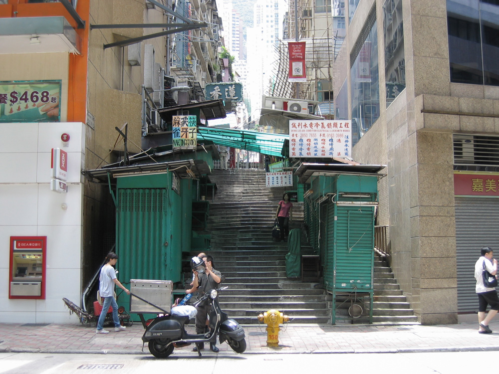 圖:現時鴨巴甸街的古老石階兩旁仍保留了不少臨時攤檔 (祁文攝)