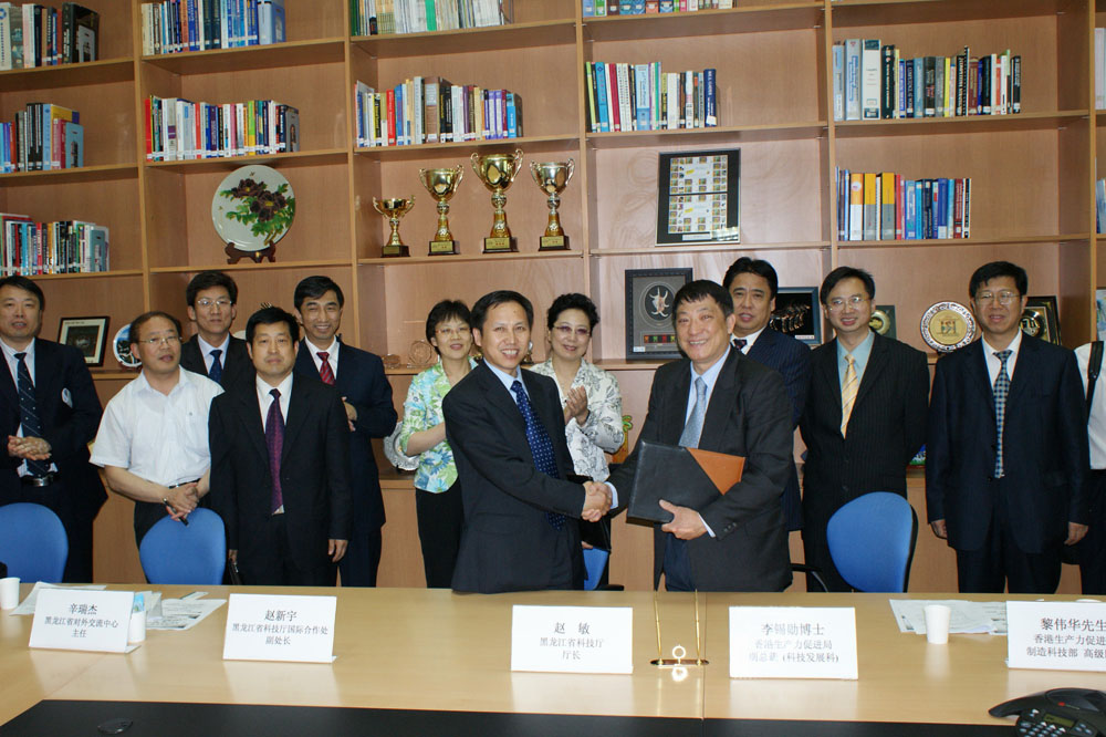 圖:黑龍江省科技廳副廳長張長斌(前排左)代表省科技廳與香港生產力促進局簽署合作備忘錄