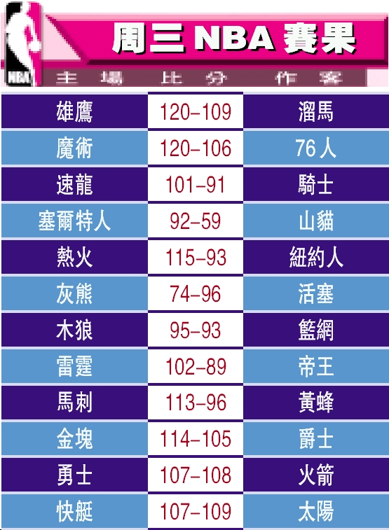 周三NBA賽果