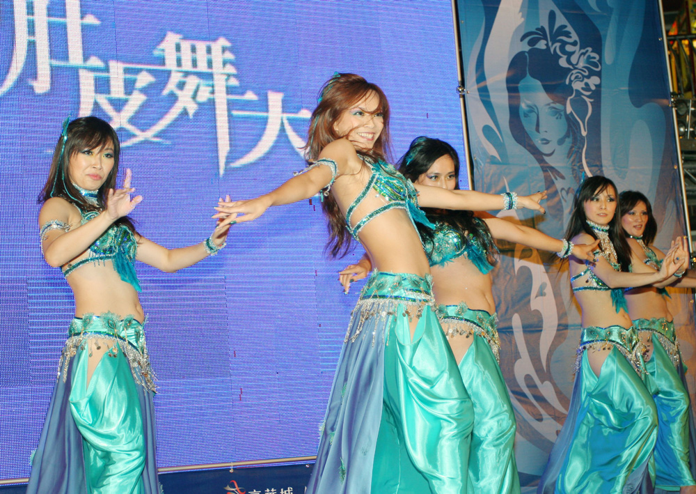 台灣第四屆肚皮舞大賽昨天於京華城舉行,參賽隊伍多達14隊,參賽者舞蹈爭奇鬥艷,展現舞動之美。最終由火鳳凰中東肚皮舞團(如圖)獲得本屆冠軍。(中央社)