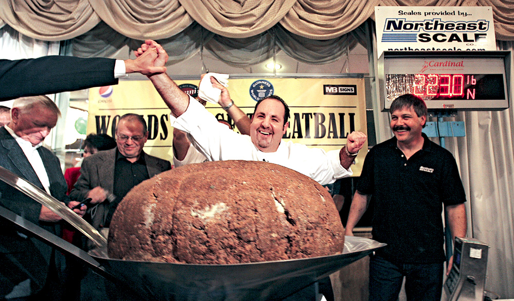 米特尼茨基打破的紀錄,是在九月被洛杉磯清談節目主持金梅爾聲言要打破在墨西哥創下的舊紀錄後,而創下的,重量為一百九十八點六磅。八月在墨西哥刷新的紀錄為一百○九磅。驕傲的米特尼茨基說,他有份「把那顆肉丸帶回(美國)東岸,因為那是它的發源地。」