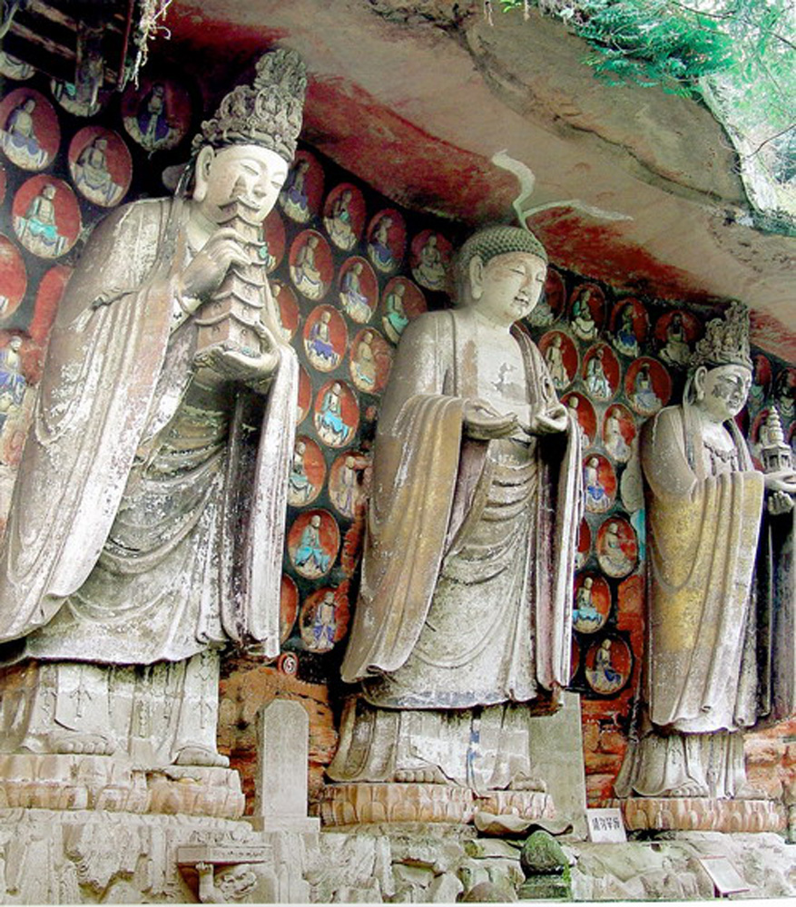 圖:重慶大足縣寶頂山的華嚴三聖完全依據《入法界品》的密教支提信仰而造像