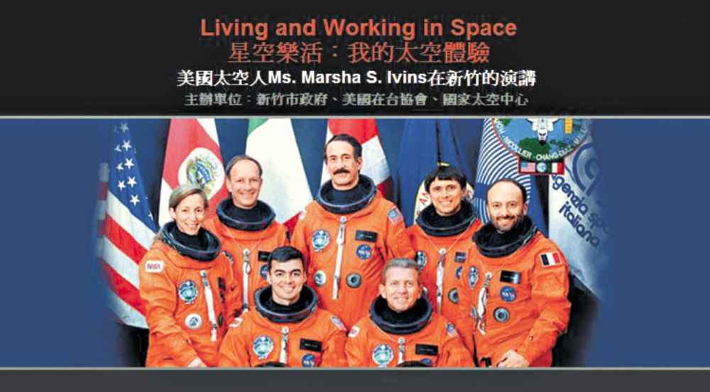 今年恰好是人類登月40周年,艾雯絲代表美國太空總署,在7月23日,以「星空樂活:我的太空體驗」為題,在台灣新竹發表演說。左圖為相關網頁http://www.nspo.org.tw/apollo/index.html。