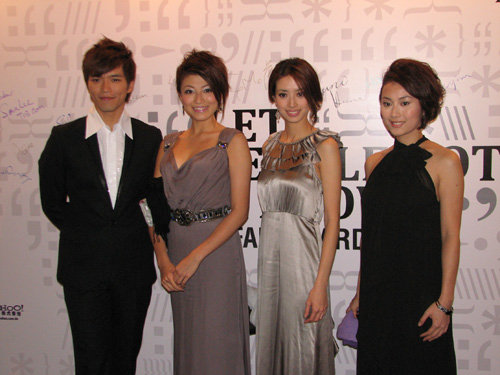圖:港男許家傑(左起)、港姐李姿敏、熊穎詩、袁嘉敏盛裝出席頒獎禮