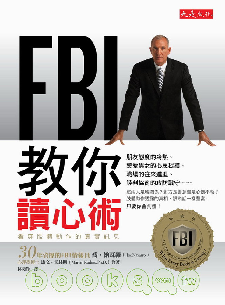 喬·納瓦羅(Joe Navarro)著的《FBI教你讀心術》(圖),以他擔任FBI情報員30年期間運用「非語言行為」的經驗而寫成,這是一本有事實根據的書:以科學事實與實際試驗結果為基礎,並結合了心理學、神經生物學、醫學、社會學、犯罪學、傳播研究及人類學的最新發現。這也是一本實用的身體語言解讀手冊。現在流行的「讀心術」,是累積了與人相處的經驗而歸納出的一套情感分析方法,據稱是美國情報局和國際談判專家的必修秘技!