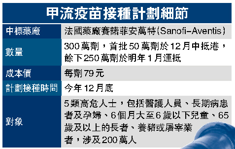 【本報訊】私家醫生季節性流感疫苗收費曾高達六百八十元,甲型H1N1流感疫苗計劃即將展開,有私家醫生亦擔心是次計劃,可能有人轉售疫苗牟利,再創「天價疫苗」。