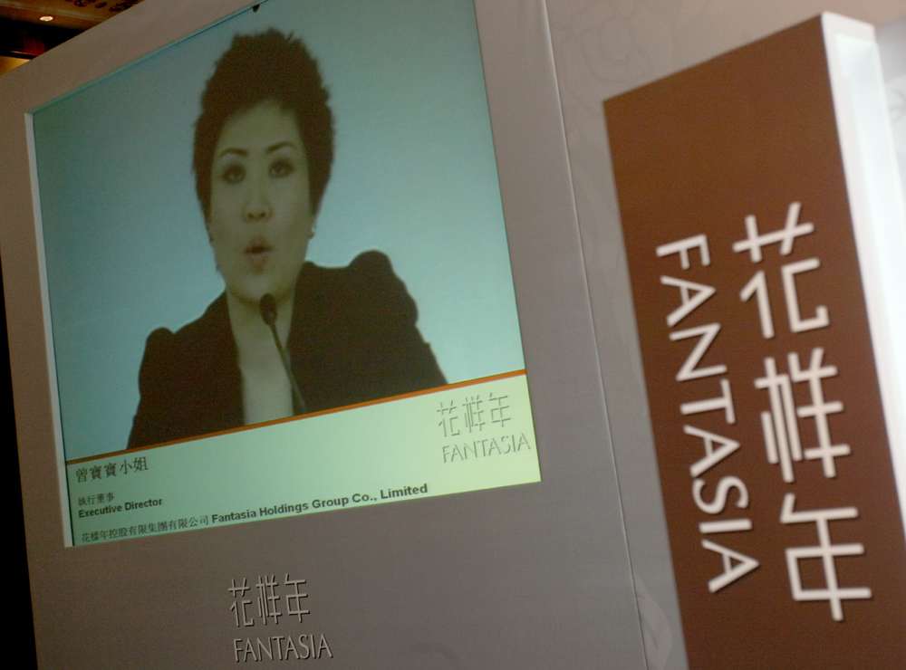 圖:花樣年執行董事曾寶寶昨日透過視像會議答記者問(本報攝)