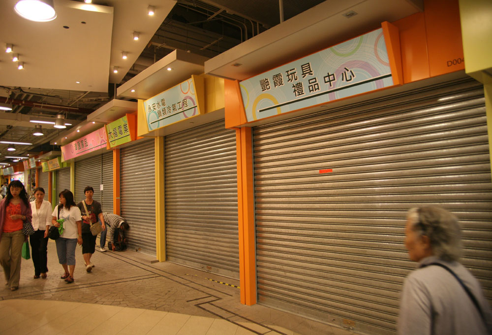 圖:響應全港公屋商戶總會罷市號召的商戶,昨日紛紛「落閘」不做生意(本報攝)