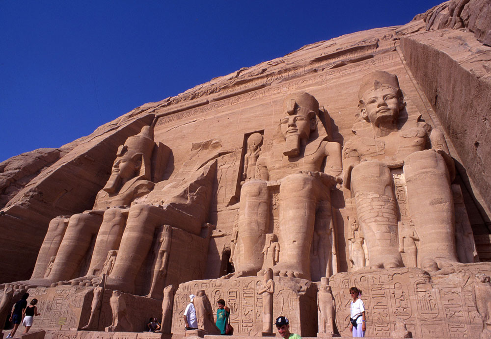 那裡有兩座重要神廟,均從山岩鑿出來,其中拉美西斯二世神廟門前雕有四座二十米高的法老王巨像,極盡威嚴。但該廟命途多舛,首先一場地震令一座巨像的頭部碎裂而無法修復。