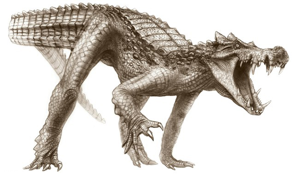 這些鱷魚,於大約一億年前棲居在地球南部地塊。這五種古怪鱷魚擁有長腿,可以像暴龍般直立行走。牠們可以高速追捕獵物,又可利用速度逃離險境,或潛入水中避難。