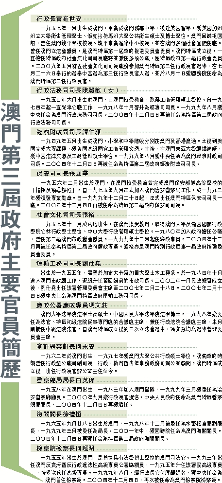 澳門第三屆政府主要官員簡歷