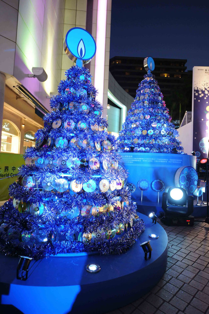 場內設置的三棵環保聖誕樹,則由超過六千張廢舊光碟製成,利用光碟反射自然光線達到裝飾效果。香港地球之友將在展覽結束後回收這些光碟,循環再造成塑膠製品。