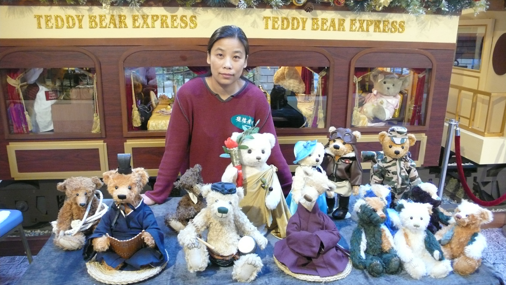 圖:內地著名泰迪熊製作藝術家丁文爽,創立了自己的泰迪熊品牌 (本報攝)