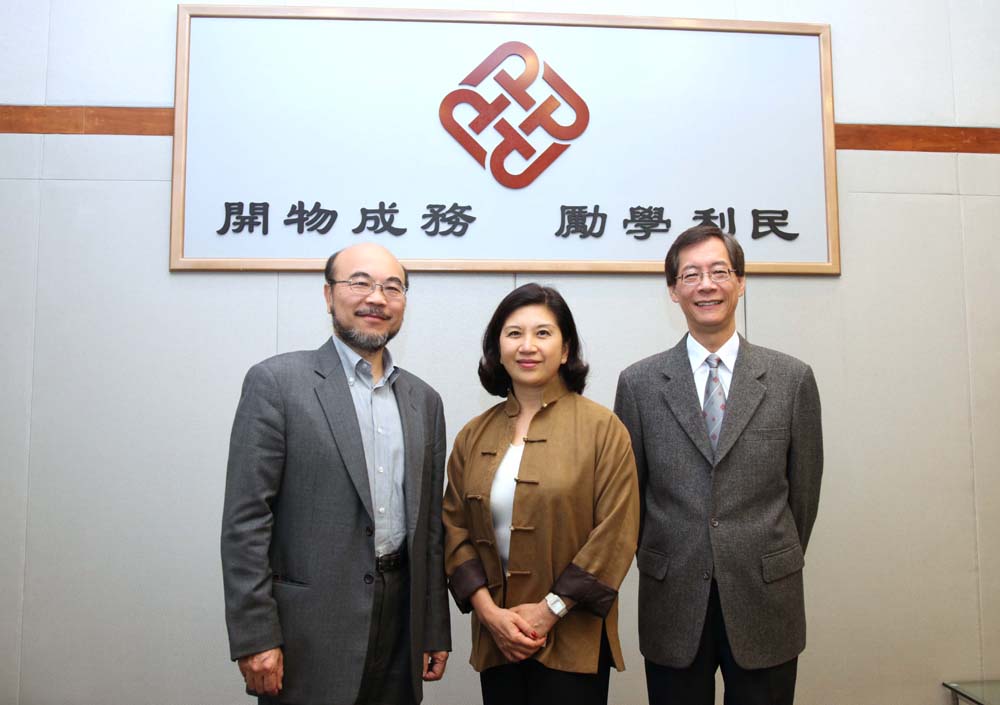 圖:楊敏德(中)將接替羅仲榮(左)出任理大校董會主席,右為理大校長唐偉章