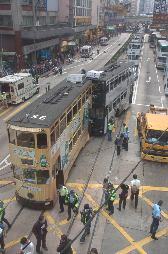 現場是銅鑼灣軒尼詩道與波斯富街十字路口。電車公司發言人表示,受傷姓關司機有九年經驗;另一名姓莊司機(四十六歲),已工作了十四年,警方和電車公司正調查事件,意外原因有待了解。