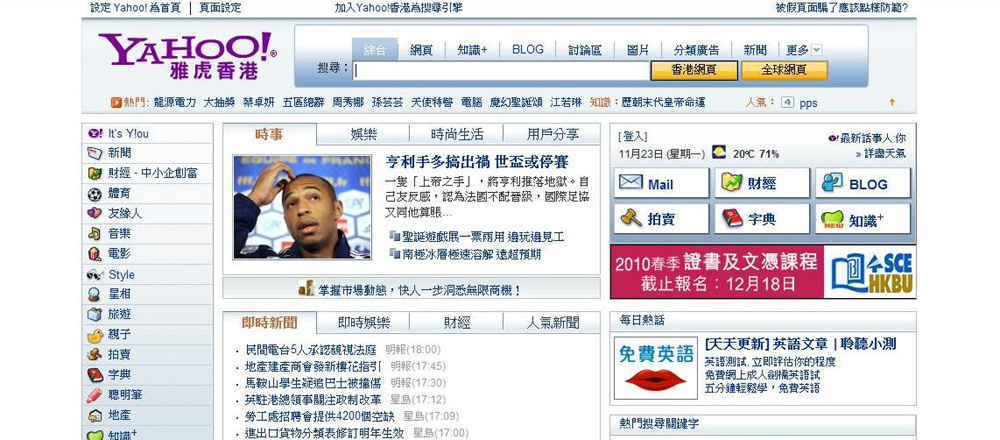 和之前介紹的Google相比,港人似乎更慣於使用雅虎(Yahoo!)網站,很多服務,像是雅虎郵箱和博客都備受網民青睞。