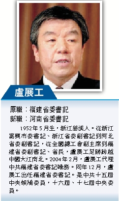 1952年5月生,浙江慈溪人。從浙江嘉興市委書記、浙江省委副書記到河北省委副書記,從全國總工會副主席到福建省委副書記、省長,盧展工足跡跨越中國大江南北。2004年2月,盧展工代理中共福建省委書記職務。同年12月,盧展工出任福建省委書記。是中共十五屆中央候補委員,十六屆、十七屆中央委員。