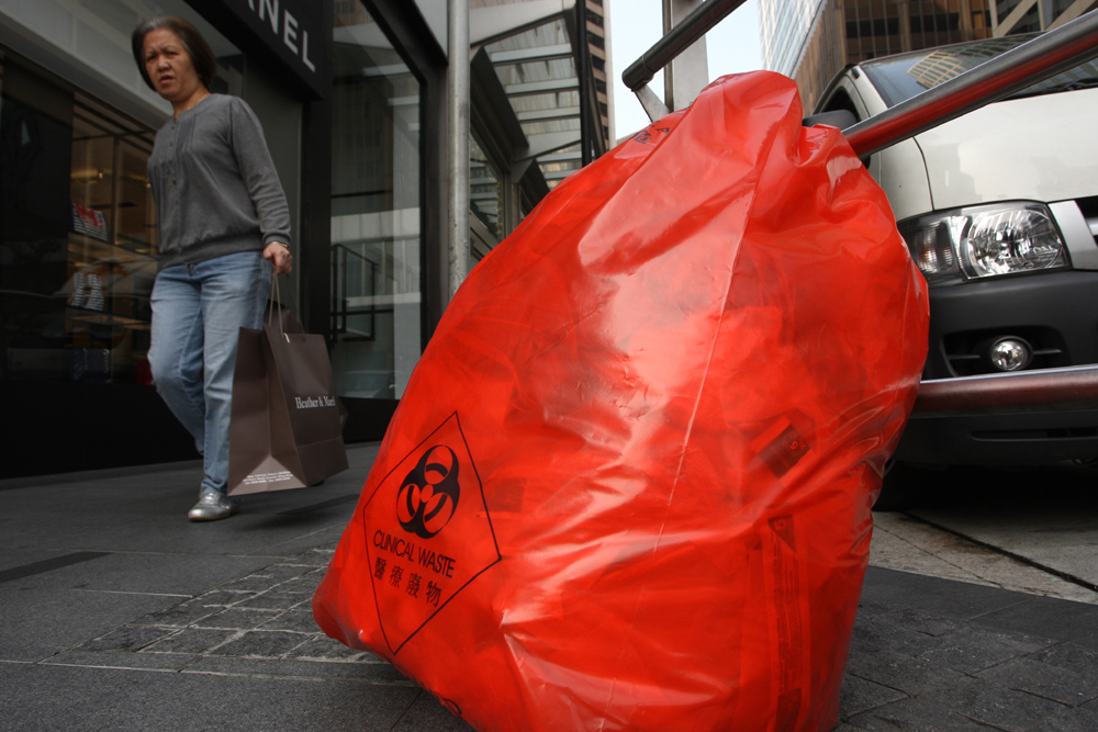 如今醫療廢物隨地擺放在中環鬧市區,就如同它鮮紅色外衣一樣,令人觸目驚心。