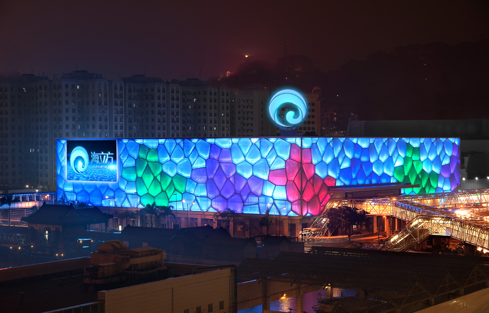 海立方位於澳門外港客運碼頭對面,由有蓋天橋連接。三層合共三萬二千多平方米的博彩大樓設有超過二百六十張賭枱及超過五百六十台角子機。海立方的外牆由不規則的氣枕膜結構嵌套而成,好像是給許多五彩繽紛的泡泡包裹着,組成簡潔自然的幾何圖案。