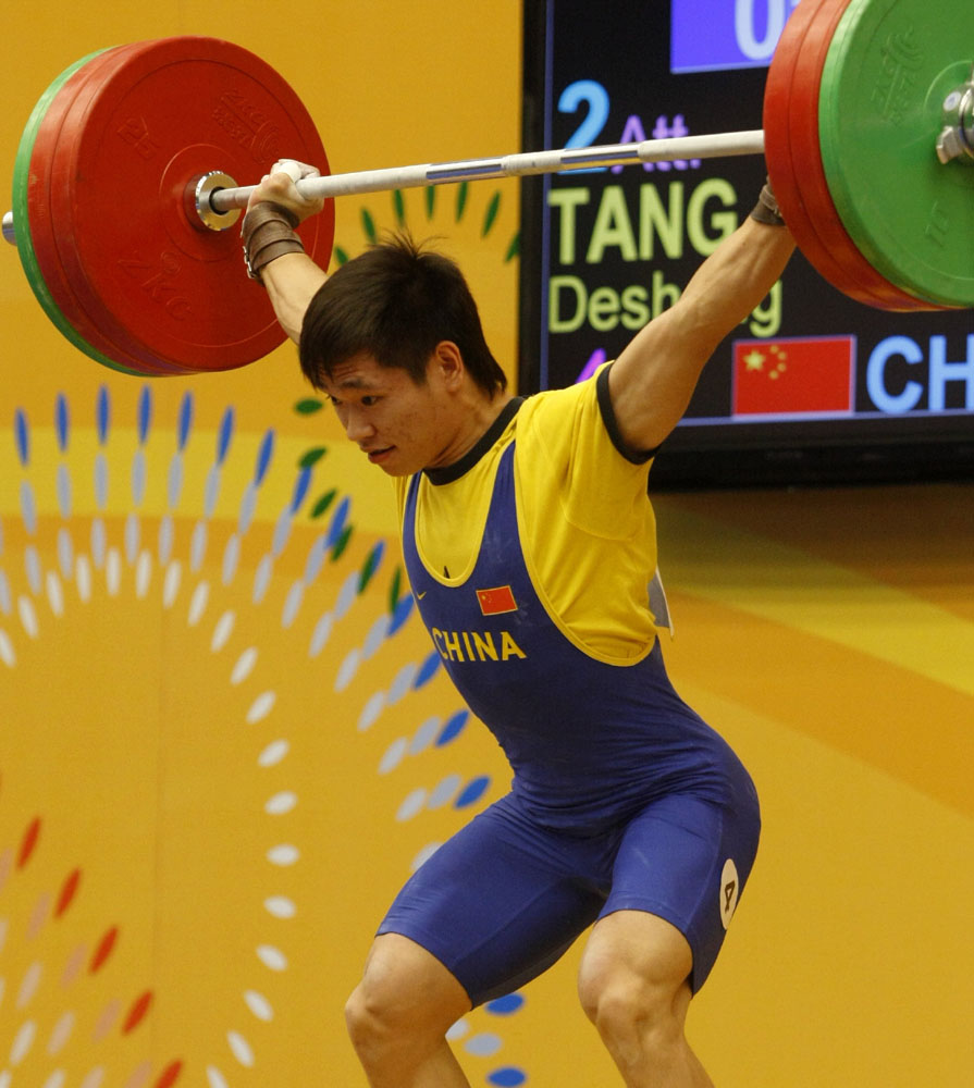 圖:唐德尚在男子舉重69公斤級獲得銀牌(本報攝)