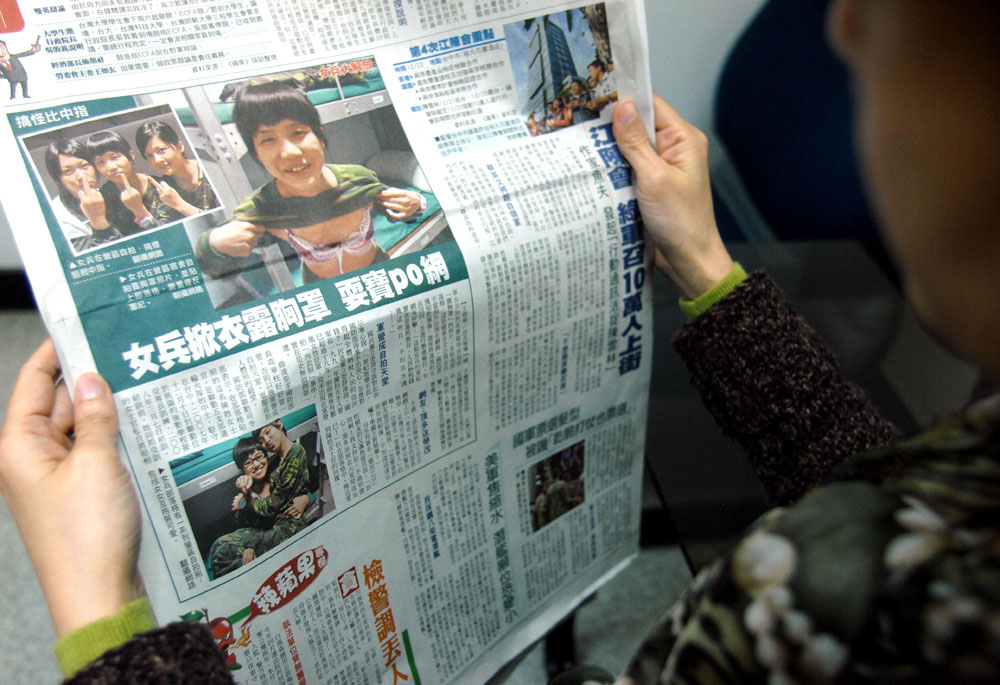 圖:台灣媒體十五日報道了台軍「聯勤司令部」女性士官在營房自拍清涼照還貼上網路一事 (法新社)
