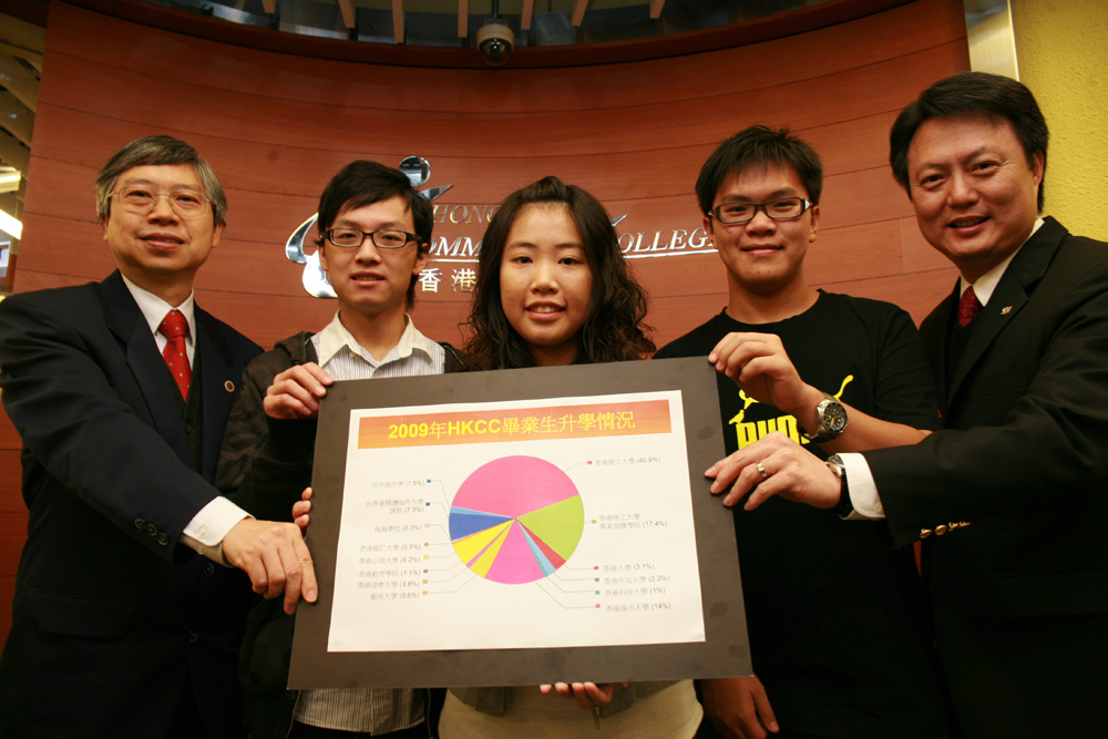但八成三受訪畢業生升讀學士學位課程,其中逾九成修讀本地大學課程,並且有三成五入讀本地大學政府資助課程。也有逾一百名副學士一年級生獲理大及其他大學提早取錄。